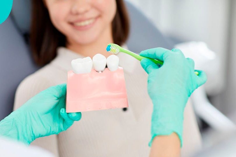 • Chải nhẹ nhàng theo chuyển động tròn. Đặc biệt lưu ý vùng tiếp giáp giữa nướu và răng sứ.